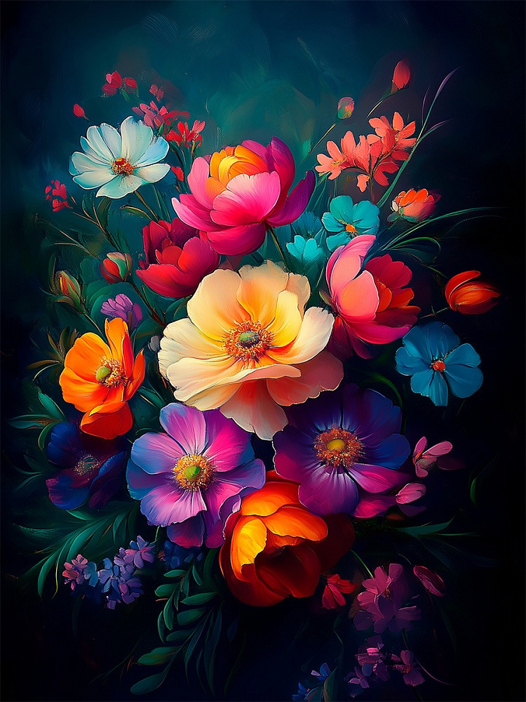 Картина для раскрашивания по номерам 30*40 см ЦВЕТЫ НА ТЕМНОМ ФОНЕ (ХК-3271)