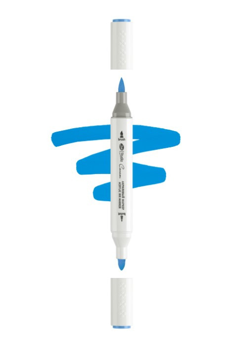 Маркер акриловый 2-х сторонний СОНЕТ кисть/пулевид. голубой
