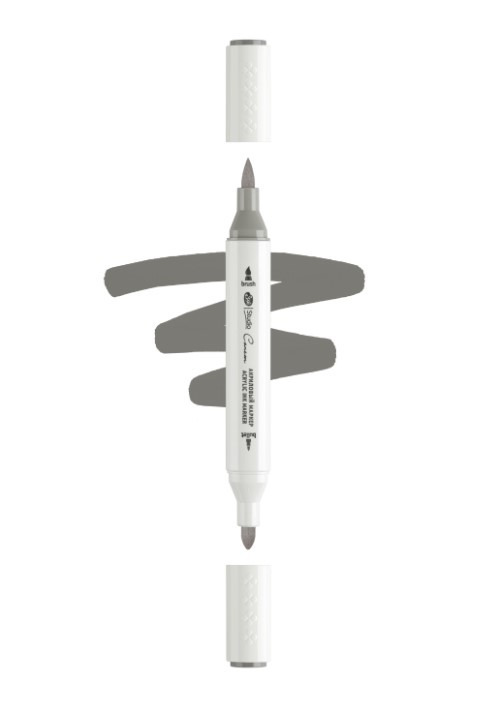 Маркер акриловый 2-х сторонний СОНЕТ кисть/пулевид. серый