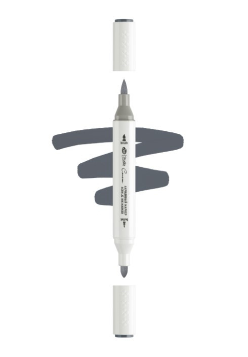Маркер акриловый 2-х сторонний СОНЕТ кисть/пулевид. серый тёмный