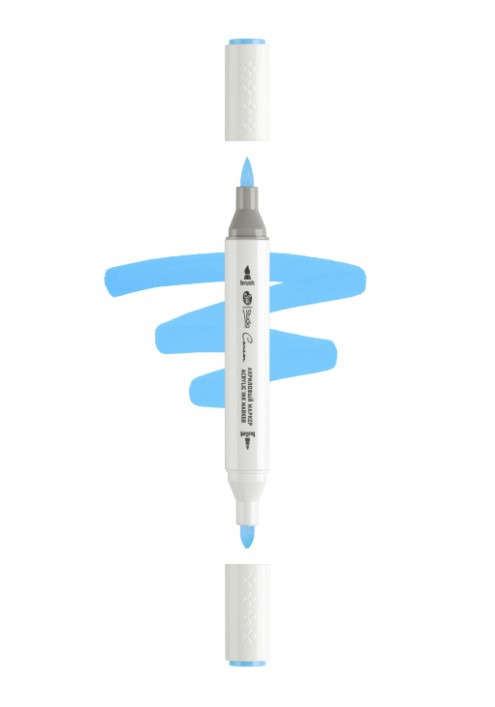 Маркер акриловый 2-х сторонний СОНЕТ кисть/пулевид. церулеум
