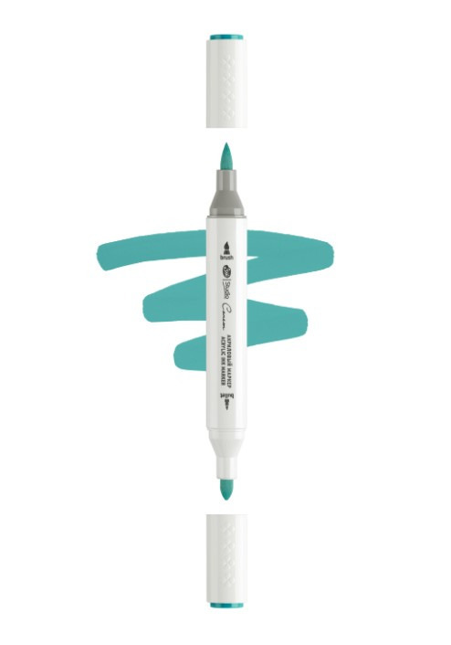 Маркер акриловый 2-х сторонний СОНЕТ кисть/пулевид. зелёный кобальтовый