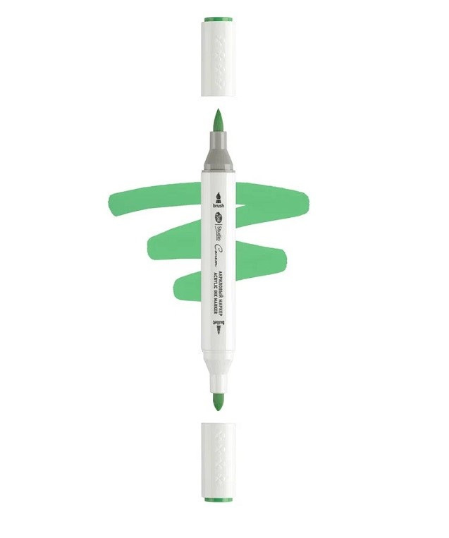 Маркер акриловый 2-х сторонний СОНЕТ кисть/пулевид. зелёный травяной тёмный