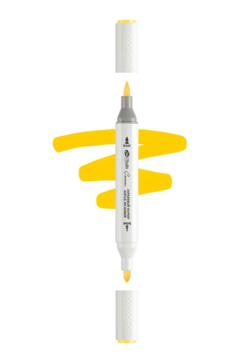 Маркер акриловый 2-х сторонний СОНЕТ кисть/пулевид. жёлтый