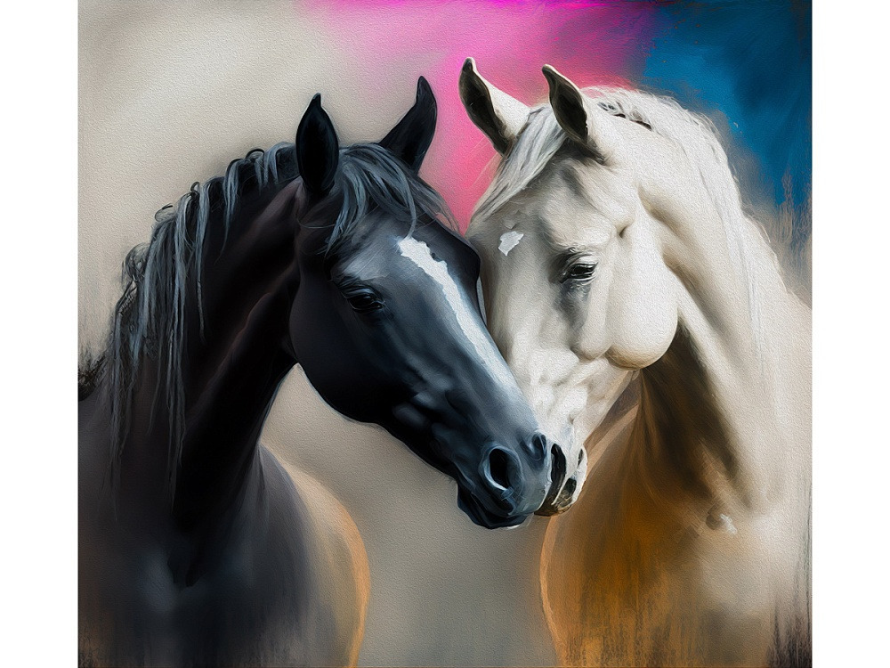 МОЗАИКА алмазная с подр. полная выкладка 17*22 см ПАРА ЛОШАДЕЙ (НД-0721)