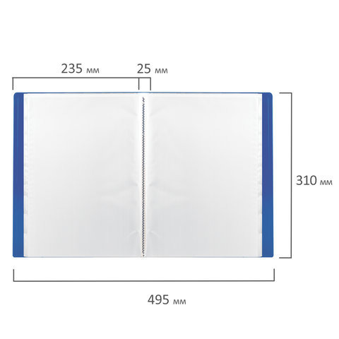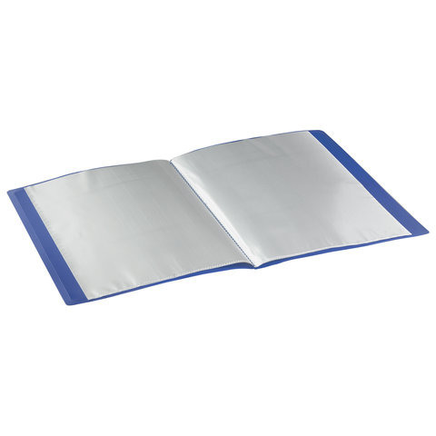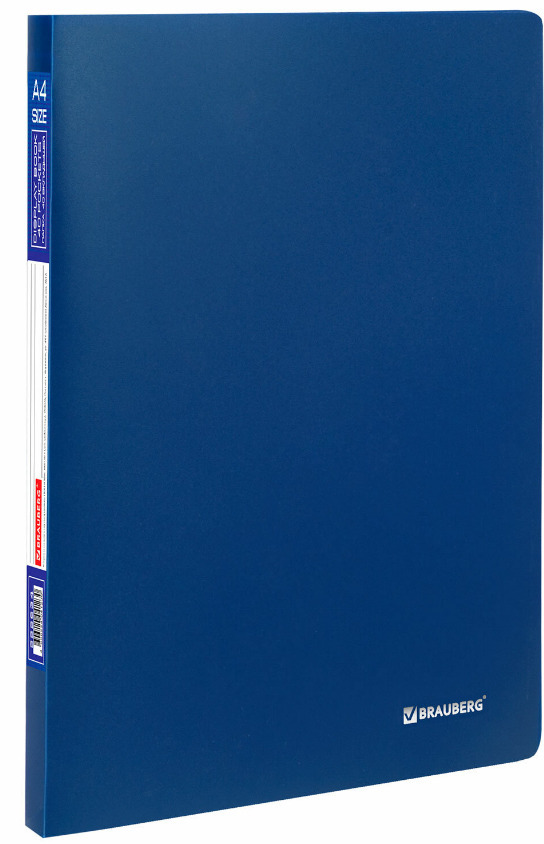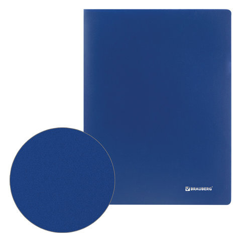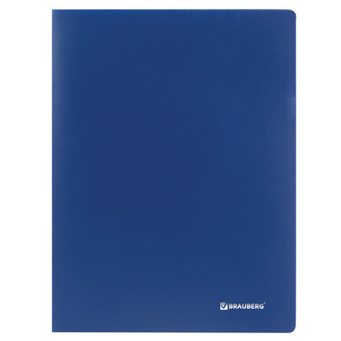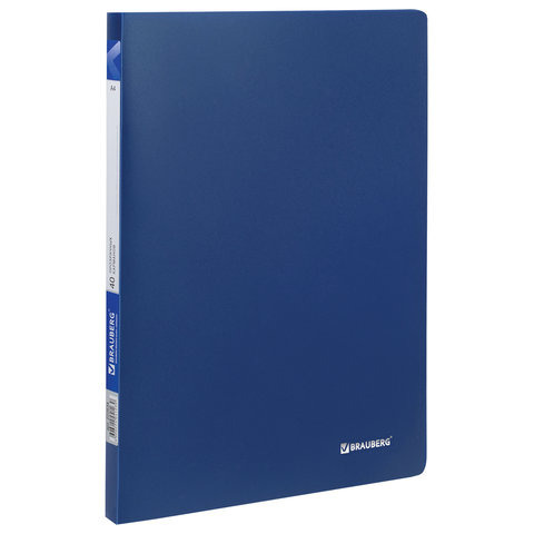 Папка BRAUBERG "Office" солидного синего цвета отлично подходит для хранения документов, составления каталогов, меню и т.п. Для маркировки содержимого на корешок наклеена этикетка. Папка изготовлена из качественного пластика толщиной 0,6 мм с антибликовой фактурой, а ширина корешка составляет 25 мм. Содержит 40 вкладышей, позволяющих хранить документы формата А4 и обеспечивающих их надежную защиту от попадания влаги, пыли и прочих повреждений.