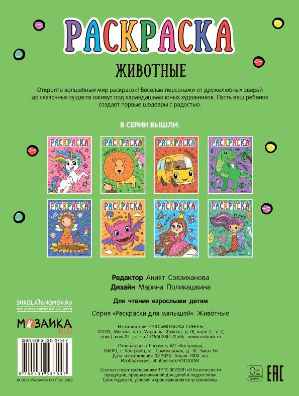 Раскраска Д/МАЛЫШЕЙ Животные (МС13754)