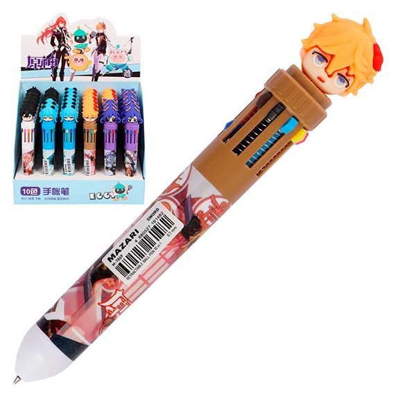 Ручка шариковая автомат. 10-ти цветная МАЗАРИ узел 0,7/лин. письма 0,3 мм Аниме (M-7869)