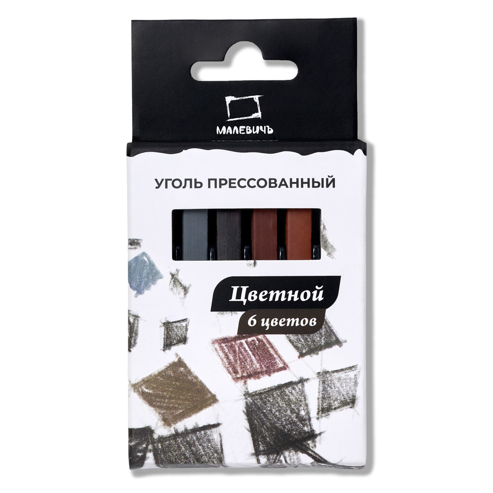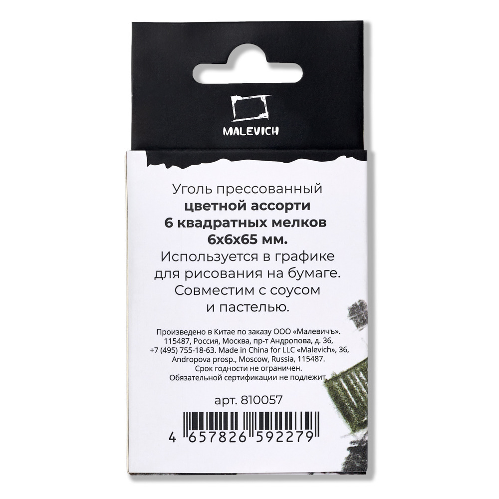Уголь для рисования 6 шт. квадратный цветной МАЛЕВИЧЪ (810057)